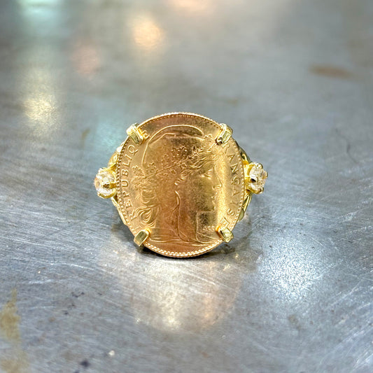 Bague Vintage Art Déco - Or Jaune 750 & Diamants