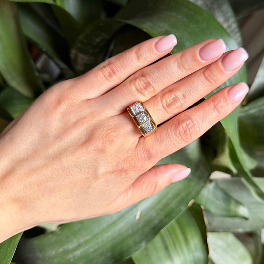 Bague Tank Art Déco - Or Jaune 750 & Diamants