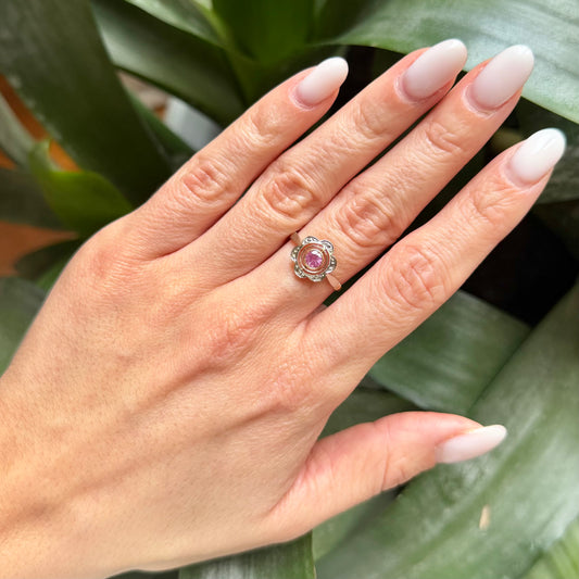 Bague Vintage Art Nouveau - Or Jaune/Blanc 750 & Saphir Rose