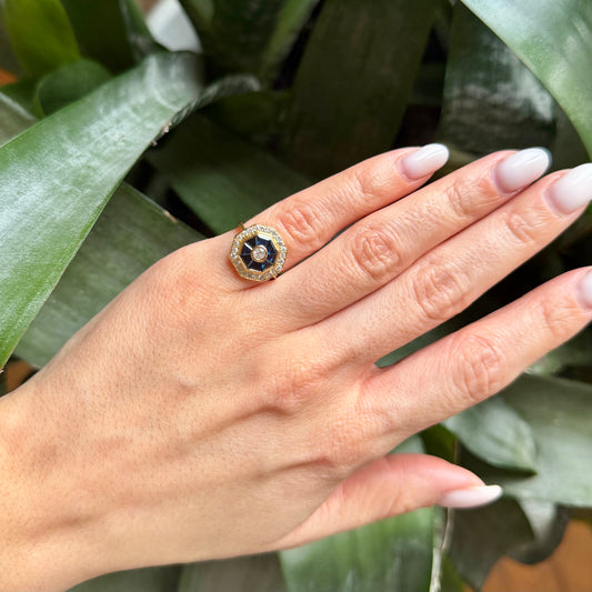 Bague Art Déco - Or Jaune 750 Saphirs & Diamants