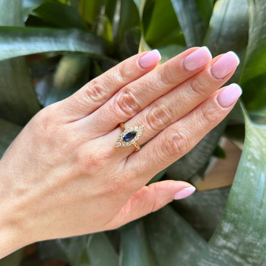 Bague Marquise Marguerite - Or Jaune 750 Saphir & Diamants