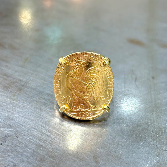 Bague Pièce - Or Jaune 750 & Pièce 20 Francs Marianne Coq