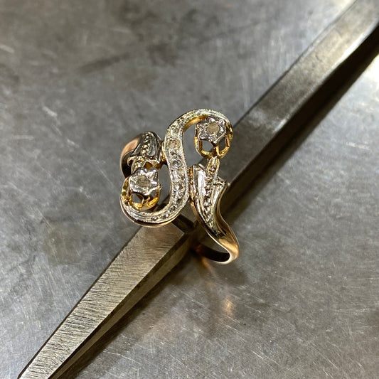 Bague Art Nouveau - Or Jaune 750 & Diamants