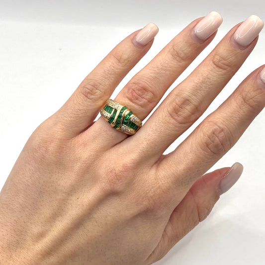 Bague Alliance - Or Jaune 750 Diamants & Émeraudes