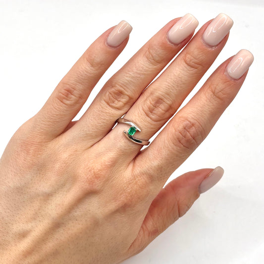Bague Entrelacs - Or Blanc 750 Émeraude