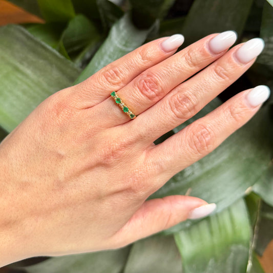 Bague Alliance - Or Jaune 750 Émeraudes & Diamants