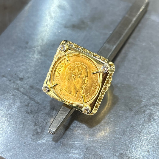 Bague Pièce - Or Jaune 750 Pièce 10 Francs Napoléon & Diamants
