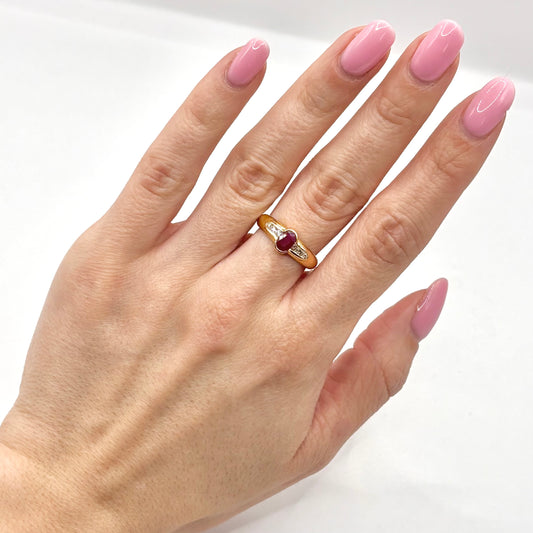 Bague Jonc - Or Jaune 750 Rubis & Diamants