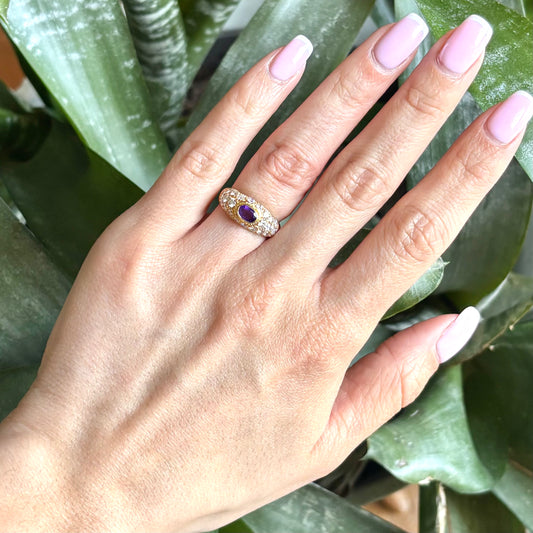 Bague Jonc - Or Jaune 750 Améthyste & Diamants