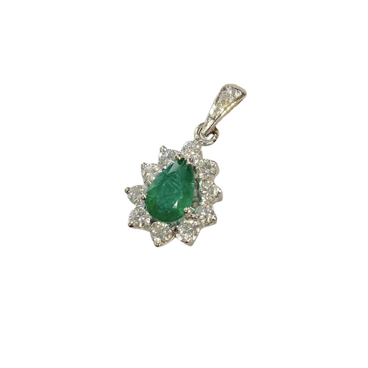 Pendentif Marguerite - Or Blanc 750 Émeraude & Diamants