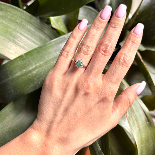 Bague Marguerite - Or Blanc 750 Émeraude & Diamants