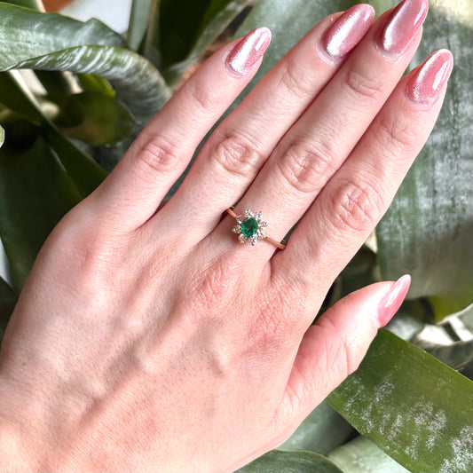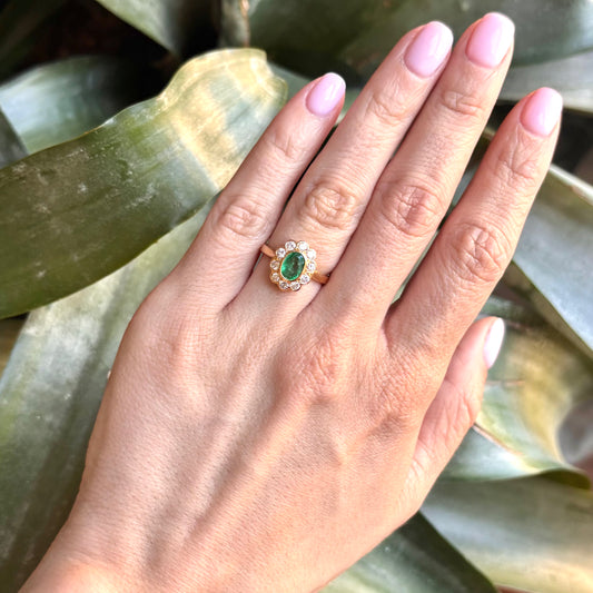 Bague Marguerite - Or Jaune 750 Émeraude & Diamants