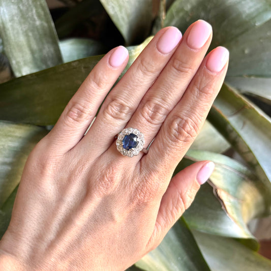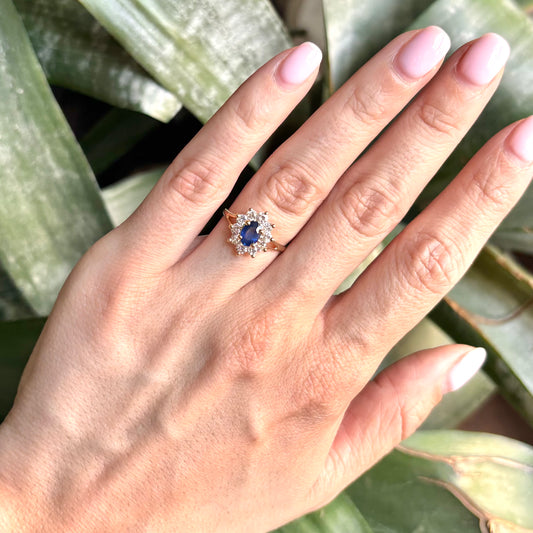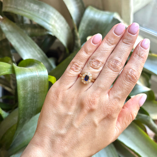 Bague Marguerite Vintage - Or Jaune/Blanc 750 Saphir & Diamants