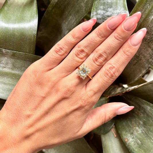 Bague Marguerite - Or Jaune 750 Aigue-Marine & Diamants
