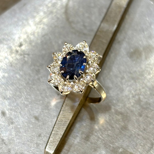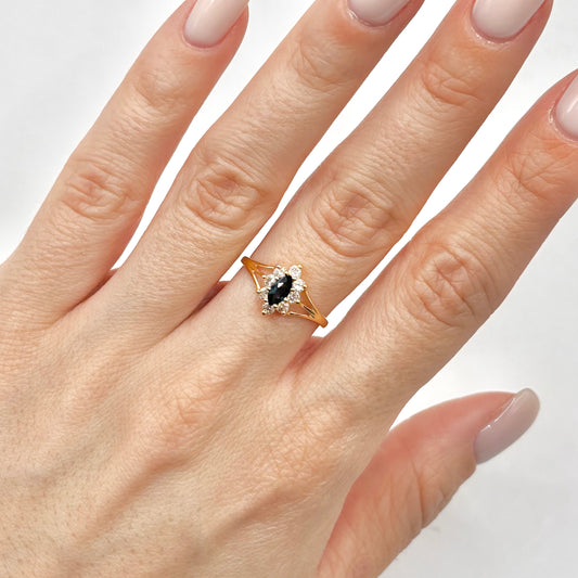 Bague Marguerite Marquise - Or Jaune 750 Saphir & Diamants