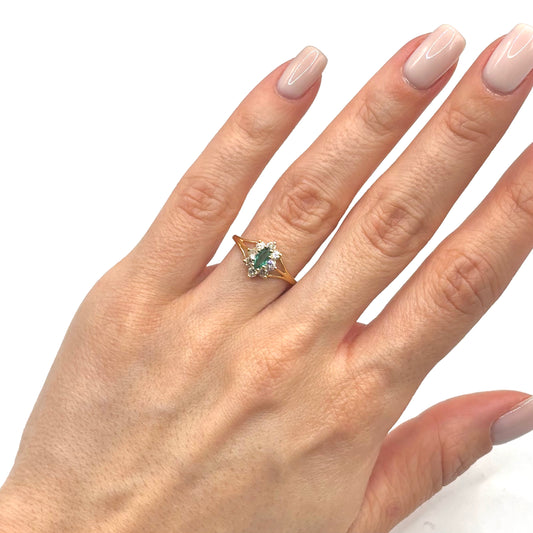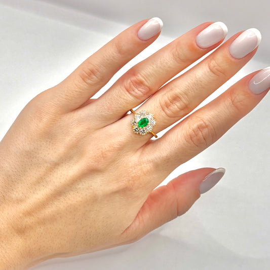 Bague Marguerite - Or Jaune 750 Émeraude & Diamants