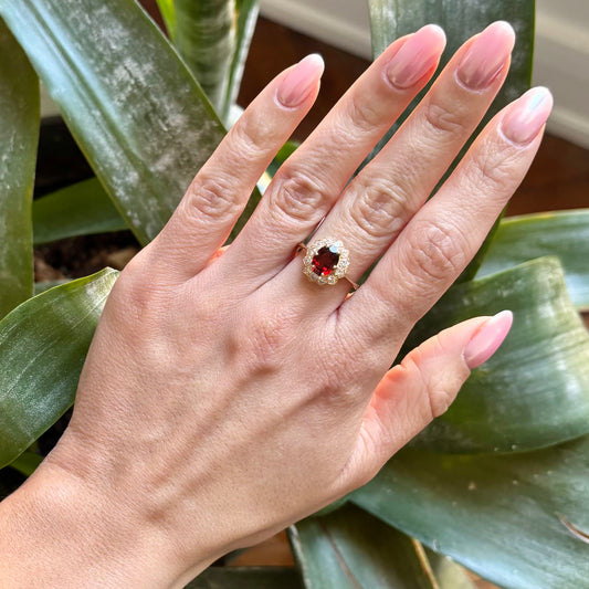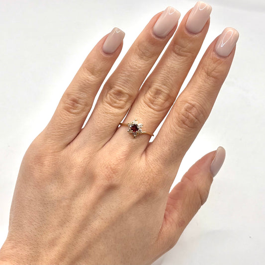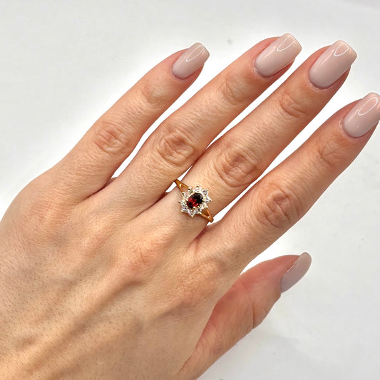 Bague Marguerite - Or Jaune 750 Grenat & Diamants