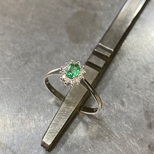 Bague Marguerite - Or Blanc 750 Émeraude & Diamants