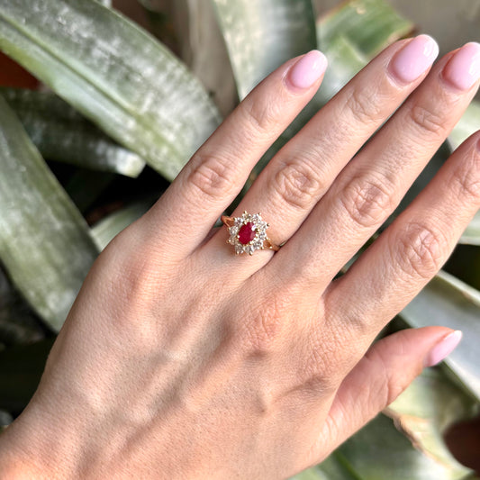 Bague Marguerite - Or Jaune 750 Rubis & Diamants