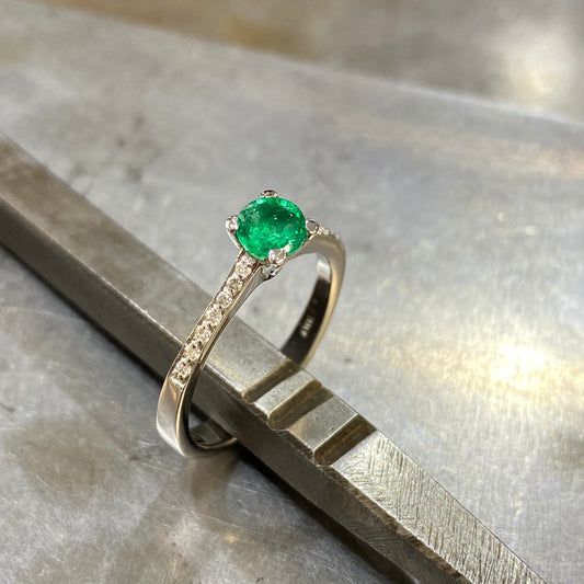 Bague Solitaire - Or Blanc 750 Émeraude & Diamants