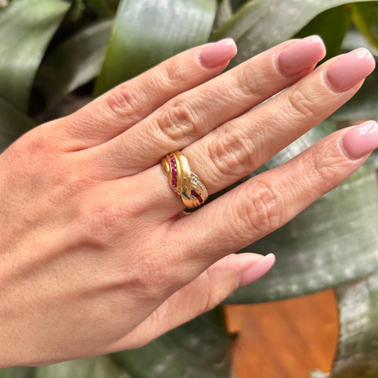 Bague Florale - Or Jaune 750 Rubis & Diamants