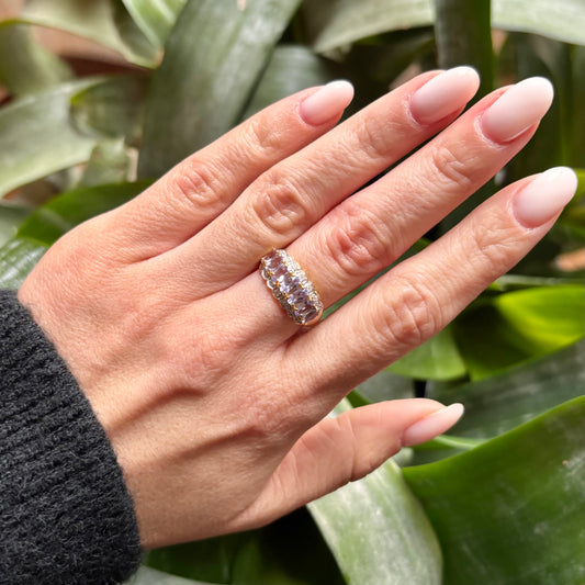 Bague Vintage - Or Jaune 750 Améthyste & Diamants