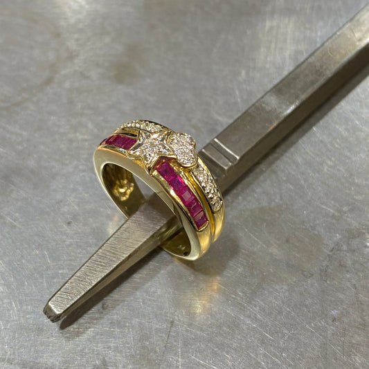 Bague Étoile - Or Jaune 750 Rubis & Diamant