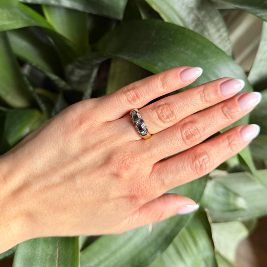 Bague Damier - Or Jaune 750 Saphirs & Diamants