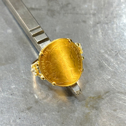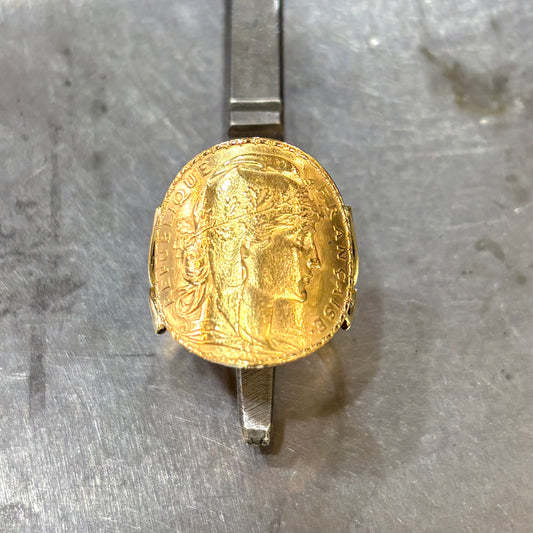 Bague Pièce - Or Jaune 750 & Pièce Or 20 Francs Marianne Coq