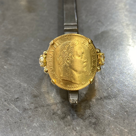 Bague Pièce - Or Jaune 750 Pièce 10 Francs Napoléon & Diamants