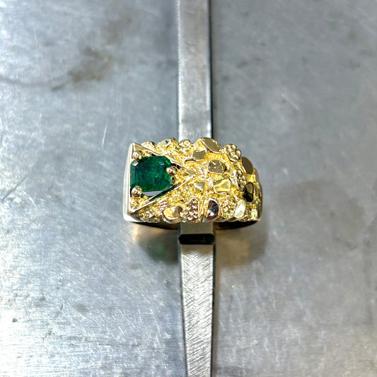 Bague Chevalière Pépite - Or Jaune 750 & Émeraude