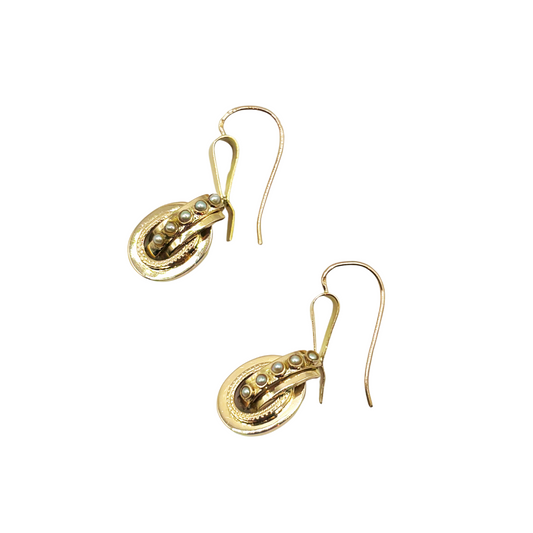 Boucles D'oreilles Vintages Art Déco - Or Jaune 750 & Perles