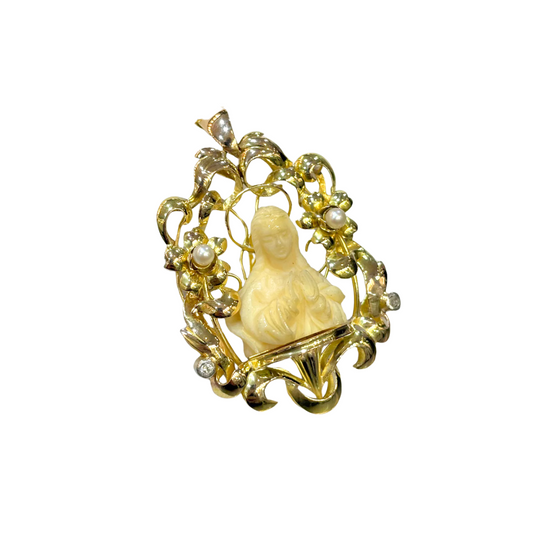Pendentif Autel Vierge Marie - Or Jaune 750 Perles & Diamants