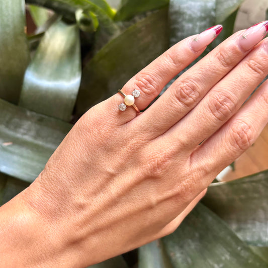Bague Floral Vintage - Or Jaune 750 & Perle Naturelle
