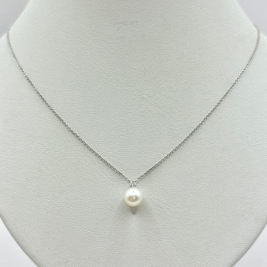 Collier Perle - Or Blanc 750 Diamant & Perle Naturelle
