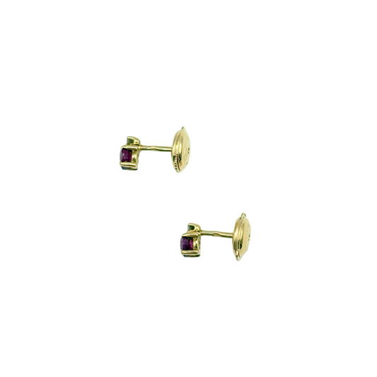 Boucles D'oreilles Puces - Or Jaune 750 Diamants & Rubis