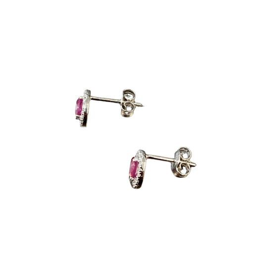 Boucles D'oreilles Puces - Or Blanc 750 Rubis & Diamants