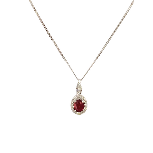 Collier Poire - Or Blanc 750 Rubis & Diamant