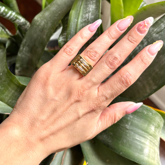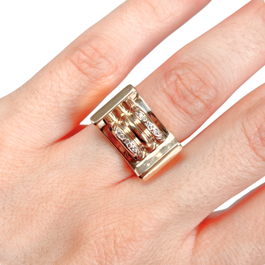 Bague Tank Vintage Art Déco - Or Jaune 750 Diamants