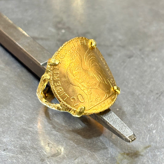 Bague Pièce - Or Jaune 750 & Pièce Or 20 Francs Marianne Coq