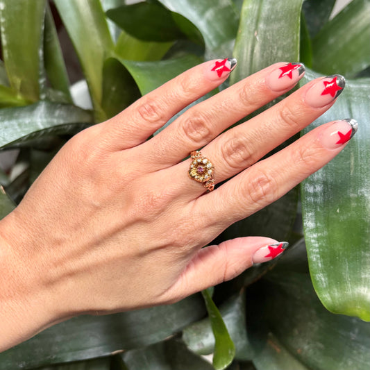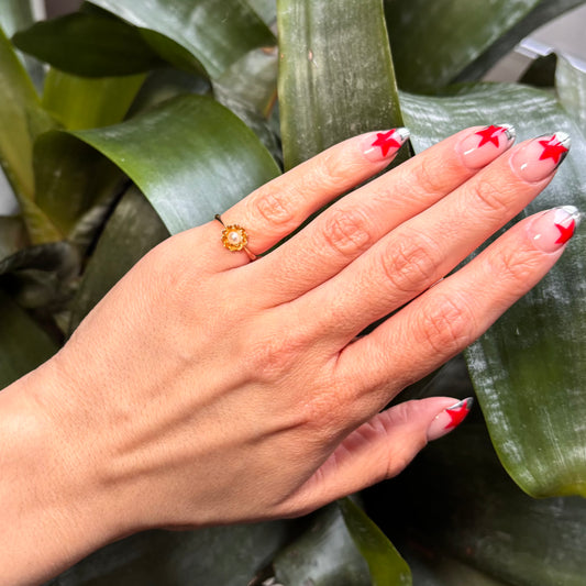 Bague Floral Vintage - Or Jaune 750 & Perle Naturelle