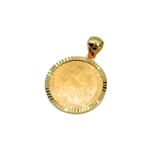 Pendentif Pièce - Or Jaune 750 & Pièce 10 Francs Marianne Coq