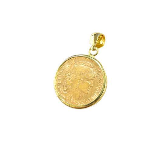 Pendentif Pièce - Or Jaune 750 & Pièce 20 Francs Marianne Coq