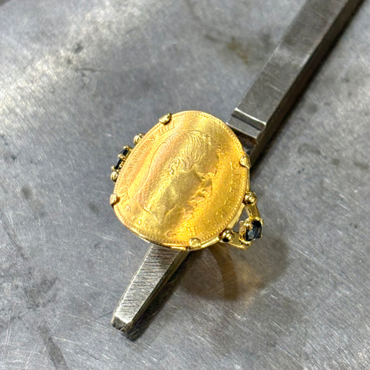 Bague Pièce - Or Jaune 750 Pièce 10 Francs Napoléon & Saphirs