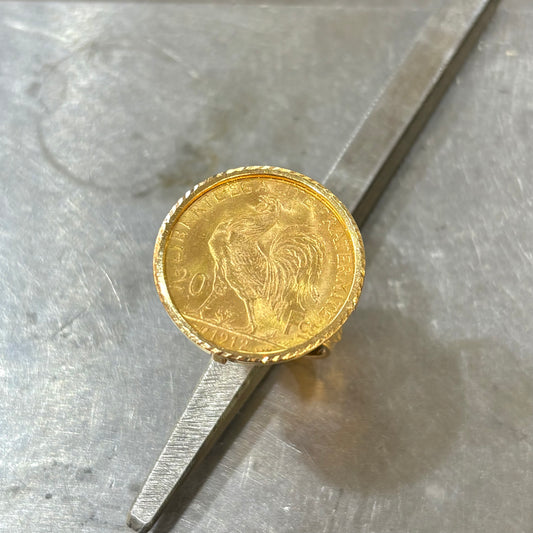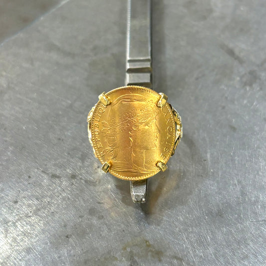 Bague Pièce - Or Jaune 750 & Pièce Or 20 Francs Marianne Coq