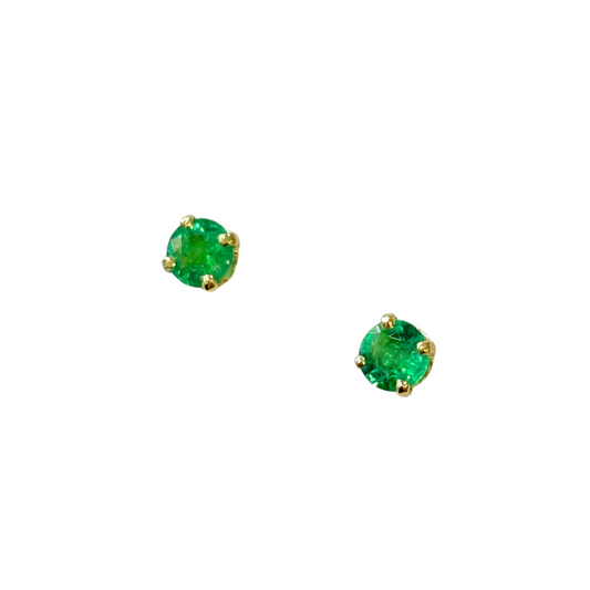 Boucles D'oreilles Puces - Or Jaune 750 & Émeraudes