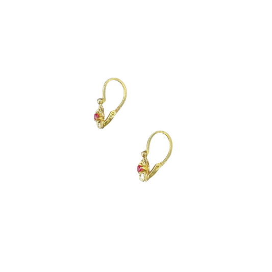 Boucles D'oreilles Floral- Or Jaune 750 & Rubis