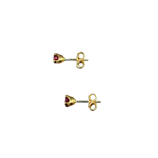 Boucles D'oreilles Puces - Or Jaune 750 & Rubis