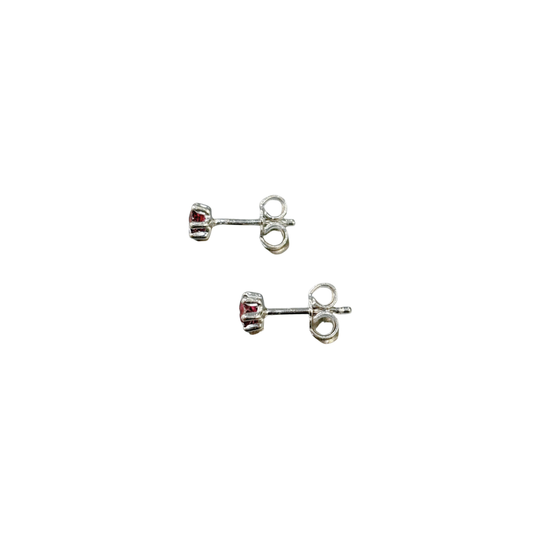 Boucles D'oreilles Puces - Or Blanc 750 & Rubis