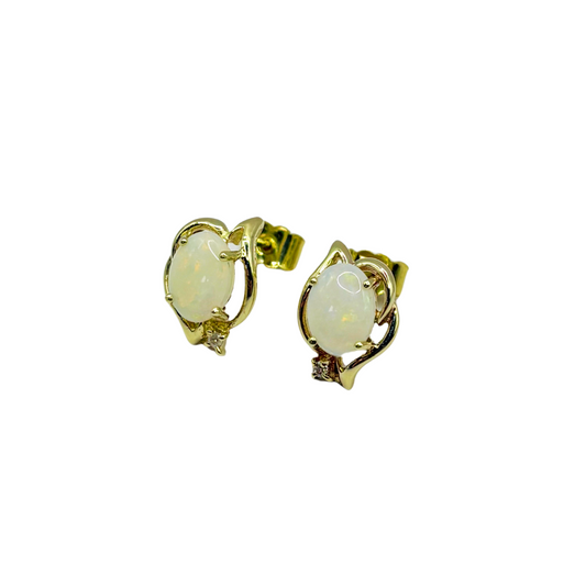 Boucles D'oreilles Vintage - Or Jaune 585 Opales & Diamants